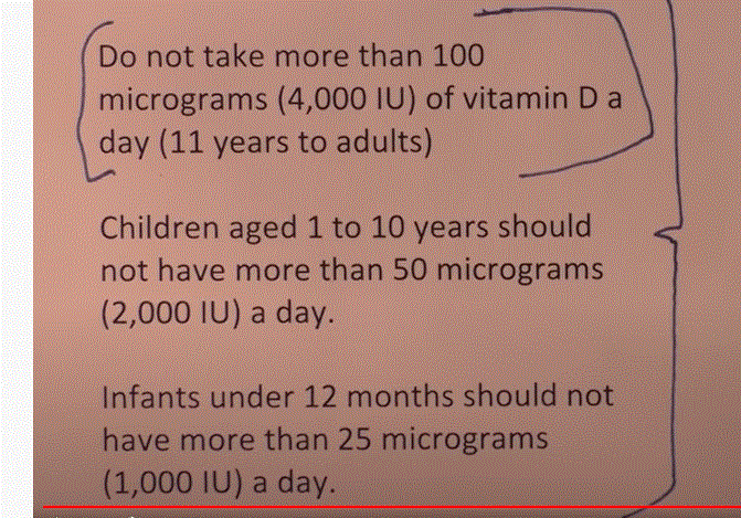 Advised vitamin D intake in the U.K if levels are not known.