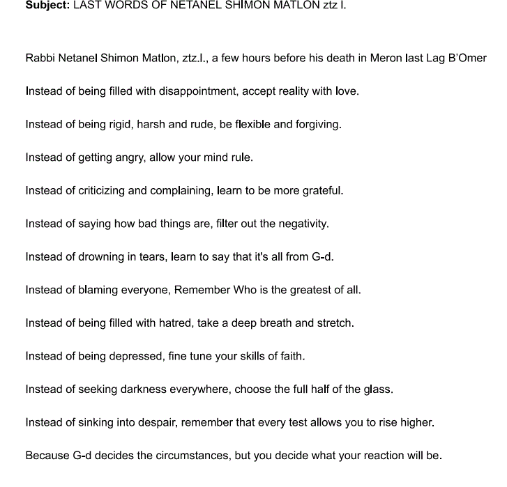 Rabbi Netanel Shimon Matlon, ztz.l., a few hours before his death in Meron last Lag B’Omer [received fro a reader]