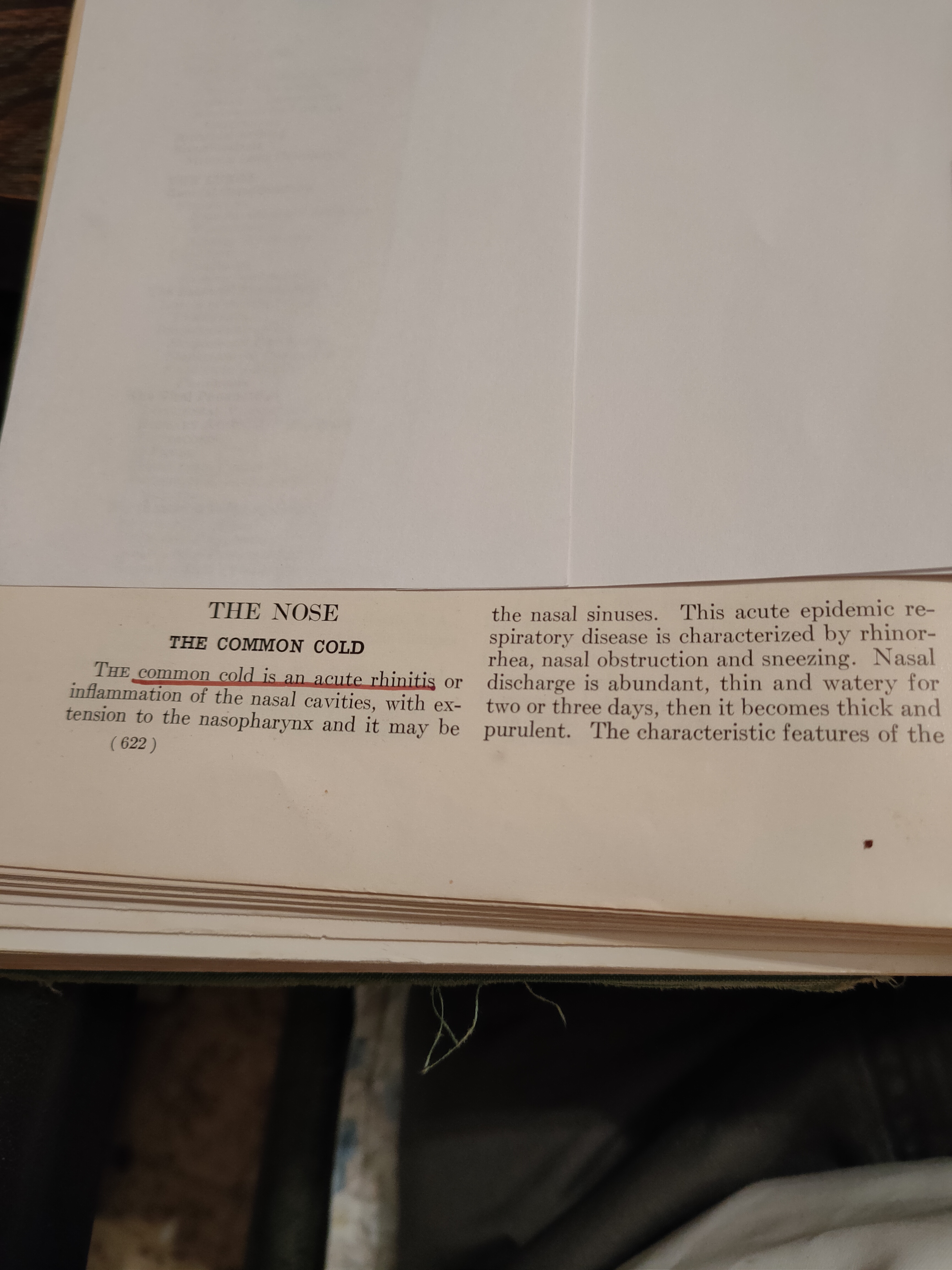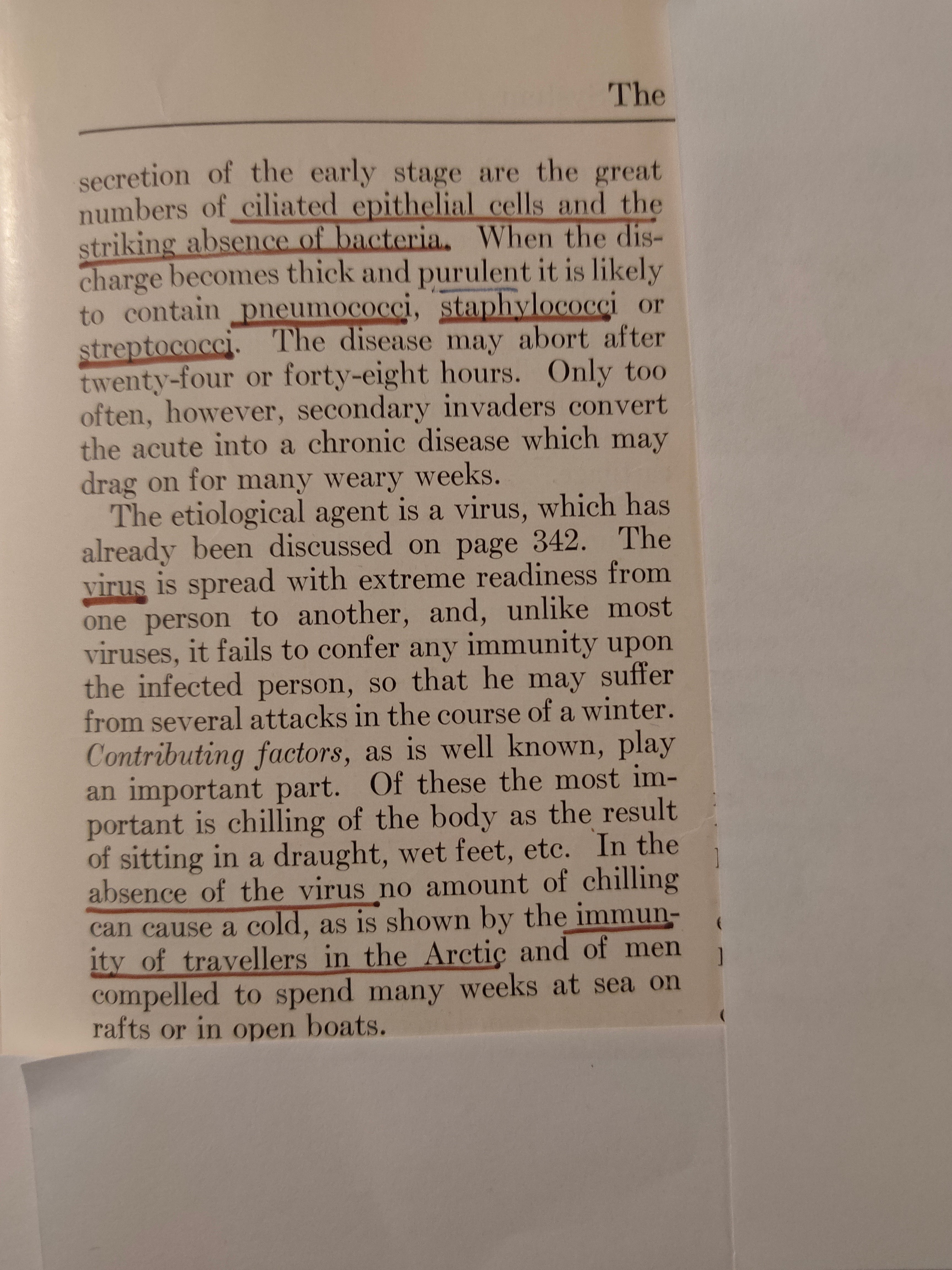 Sending you now the most logic story about the common cold which a textbook of the sixties described with a simple conclusion but this is not mentioned in a textbook of 2018 [basically nothing changed]