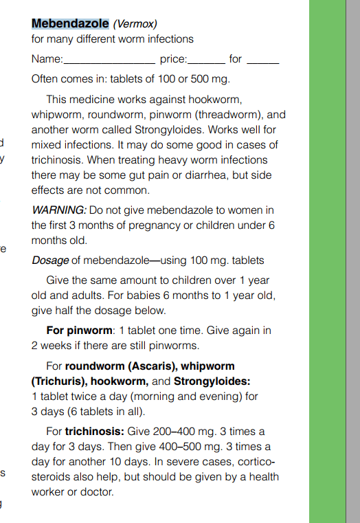 treatment: vermox 2x per day 100 mg 3 fdays [ask your doctor]