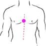 From the coloured point, one can massage towards both breasts [or if you are trained in acupuncture to put 2 needles in, each one from this point towards the breasts] Don’t do this without training as there is a danger of puncturing the lungs!]