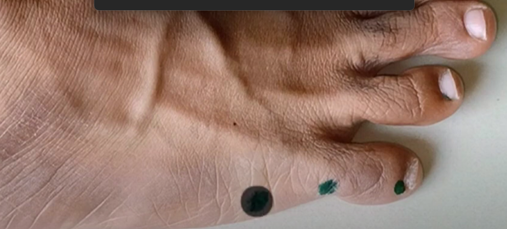 The second point is kidney 6 [see picture], just in a small dimp[[sheka] under the inner ankle [for reasons unknown to me, the right ankle is advised]