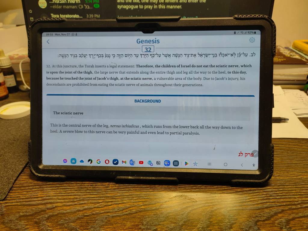 Last picture from Rav Steinsalts :UPON the joint of the thigh!? The Tora says : AL kaf ha-yerech….not clear to me why not wrtiten ] “TACHAT” kaf ha-yerech]